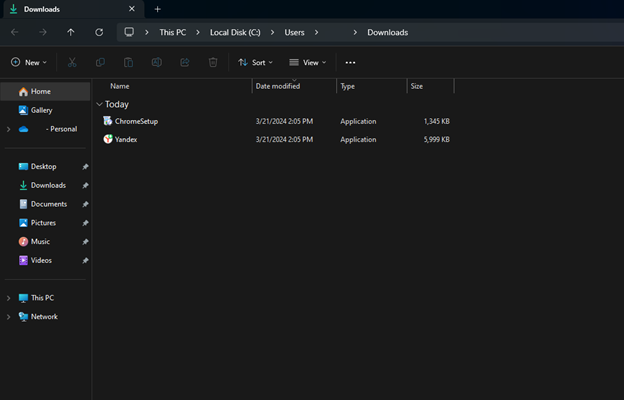 Everything you download from the Internet is stored in the Downloads folder. So if you have never cleaned it, we recommend doing that. Open the Start menu and type Downloads to open the respective folder. Select the files you do not need and delete them — they are indeed often unnecessary. If some of them are important to you, transfer them to another partition, if any.