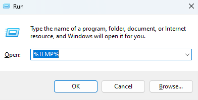 If the temporary files have not been deleted by Windows Disk Cleanup, you can remove them in another way. To do that, open the Run command window by pressing Win + R. Then, type %TEMP% and click ‘OK.’