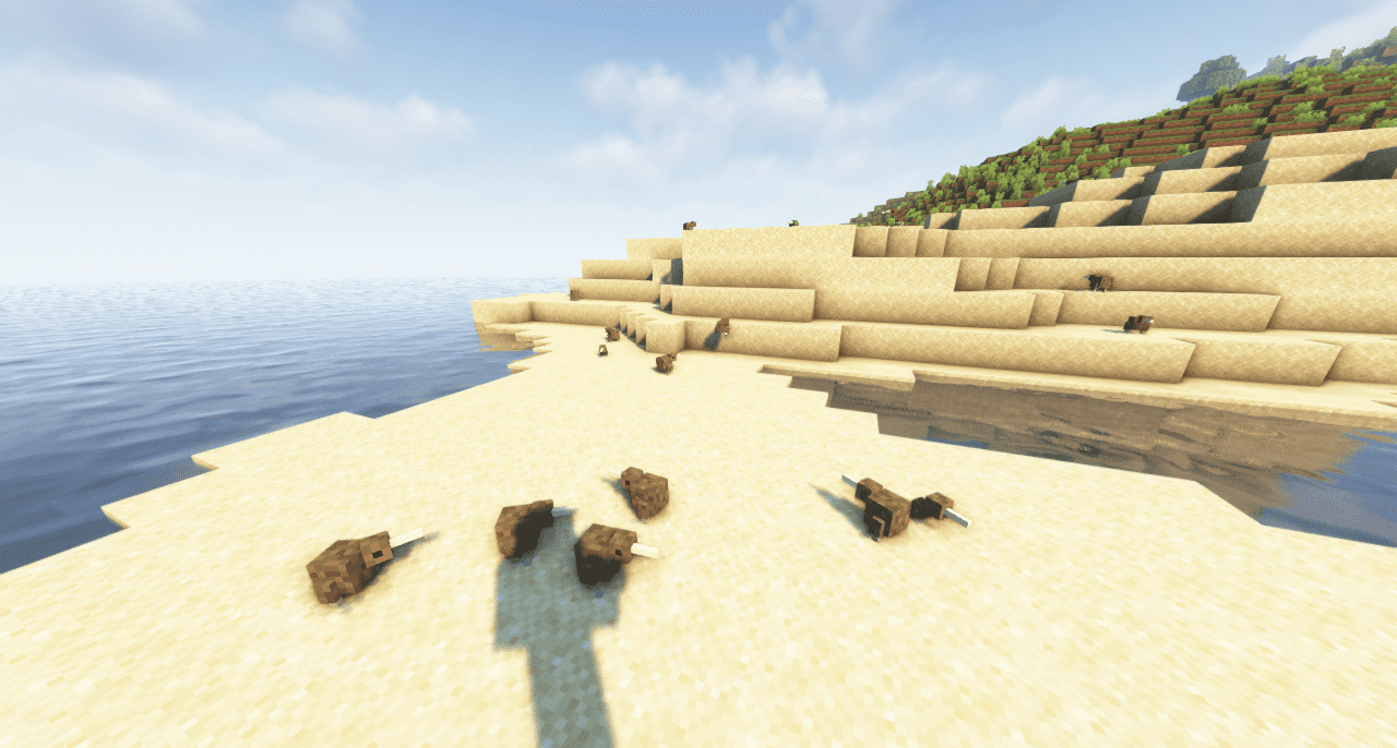 They lay eggs, love seeds, and can become great pets if you take care of them. But there’s also a danger — a rare “laser kiwi” variant capable of causing serious trouble. The mod not only adds atmosphere but also makes traveling through biomes more interesting and the Minecraft world’s nature more diverse and lively.