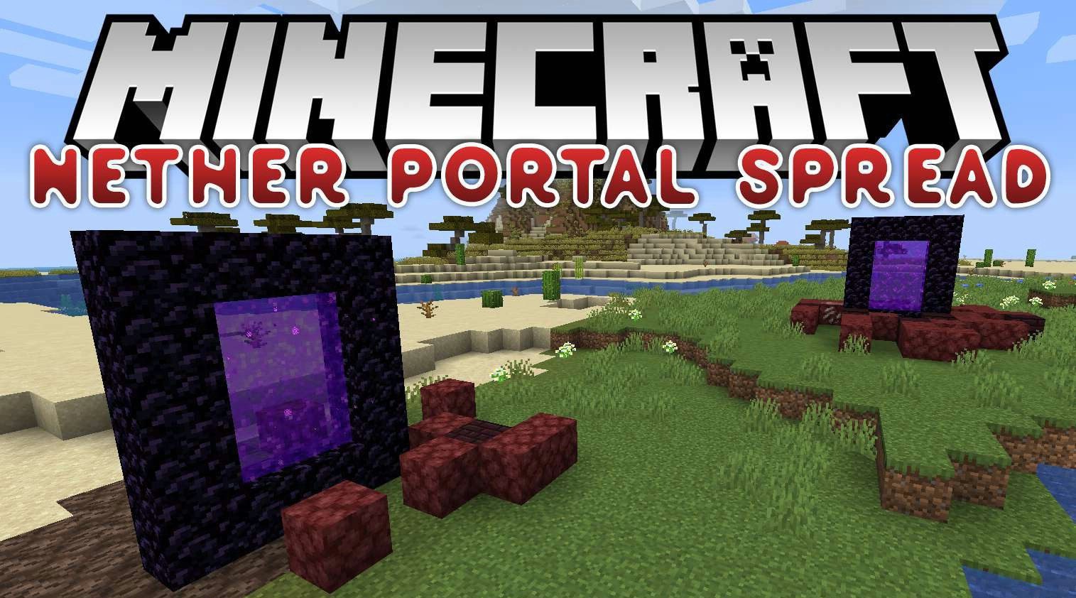 With Nether Portal Spread mod, Nether portals become a dangerous anomaly that changes the surrounding world. When generated randomly, they can appear in any biome, and nearby blocks become corrupted. Grass can turn into Nether wart, trees — into deformed remains, and soil — into netherrack. The world begins to look as if the Nether is growing through the portals.