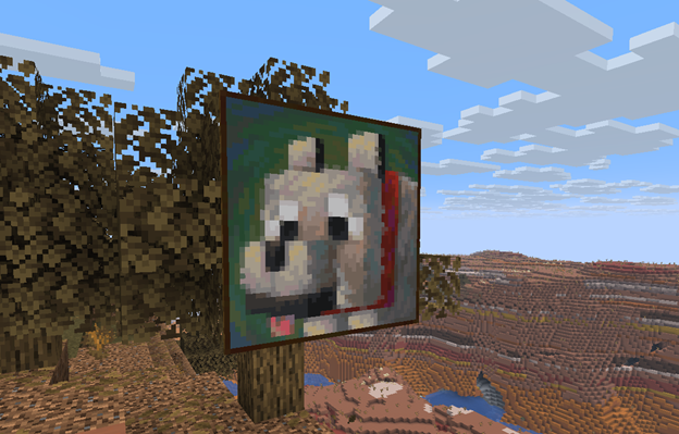 · Another painting sized 3*3 appeared, which was created by Sara Boving. It depicts a tamed dog.