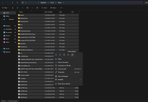 The Temp folder will open, which stores temporary files. Select all of them and delete them. The method is also safe: you should not worry about the system, as you only delete unnecessary stuff. This folder is quite large at times, so if you do not have enough disk space, deleting these files will be quite beneficial.
