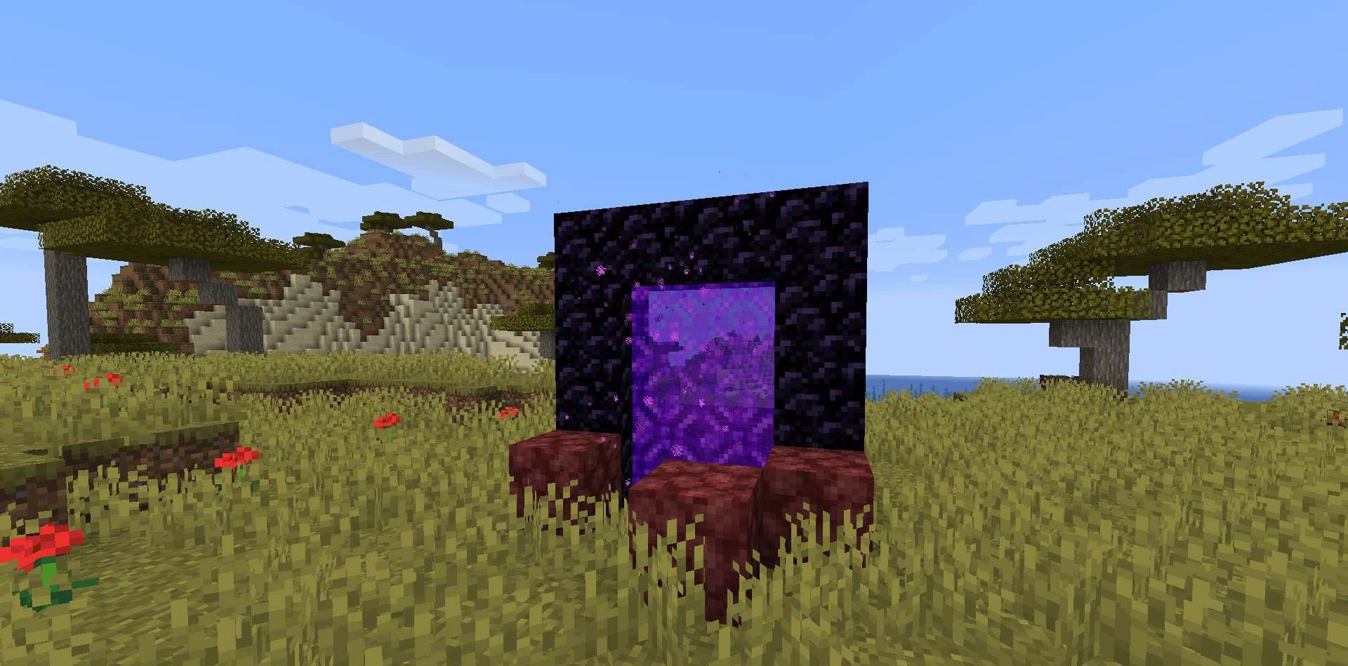 With Nether Portal Spread mod, Nether portals become a dangerous anomaly that changes the surrounding world. When generated randomly, they can appear in any biome, and nearby blocks become corrupted. Grass can turn into Nether wart, trees — into deformed remains, and soil — into netherrack. The world begins to look as if the Nether is growing through the portals.